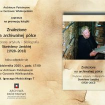 Archiwum Państwowe w Gorzowie Wielkopolskim zaprasza na promocję książki pt. „Znalezione na archiwalnej półce. Wybrane artykuły i bibliografia Stanisławy Janickiej (1928-2013)”, która odbędzie się 29 października 2025 r., godz. 17:00 … Czytaj dalej →